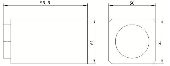 95.5mm*50mm*61mm (124 mm*51mm*56mm met stertbord) |