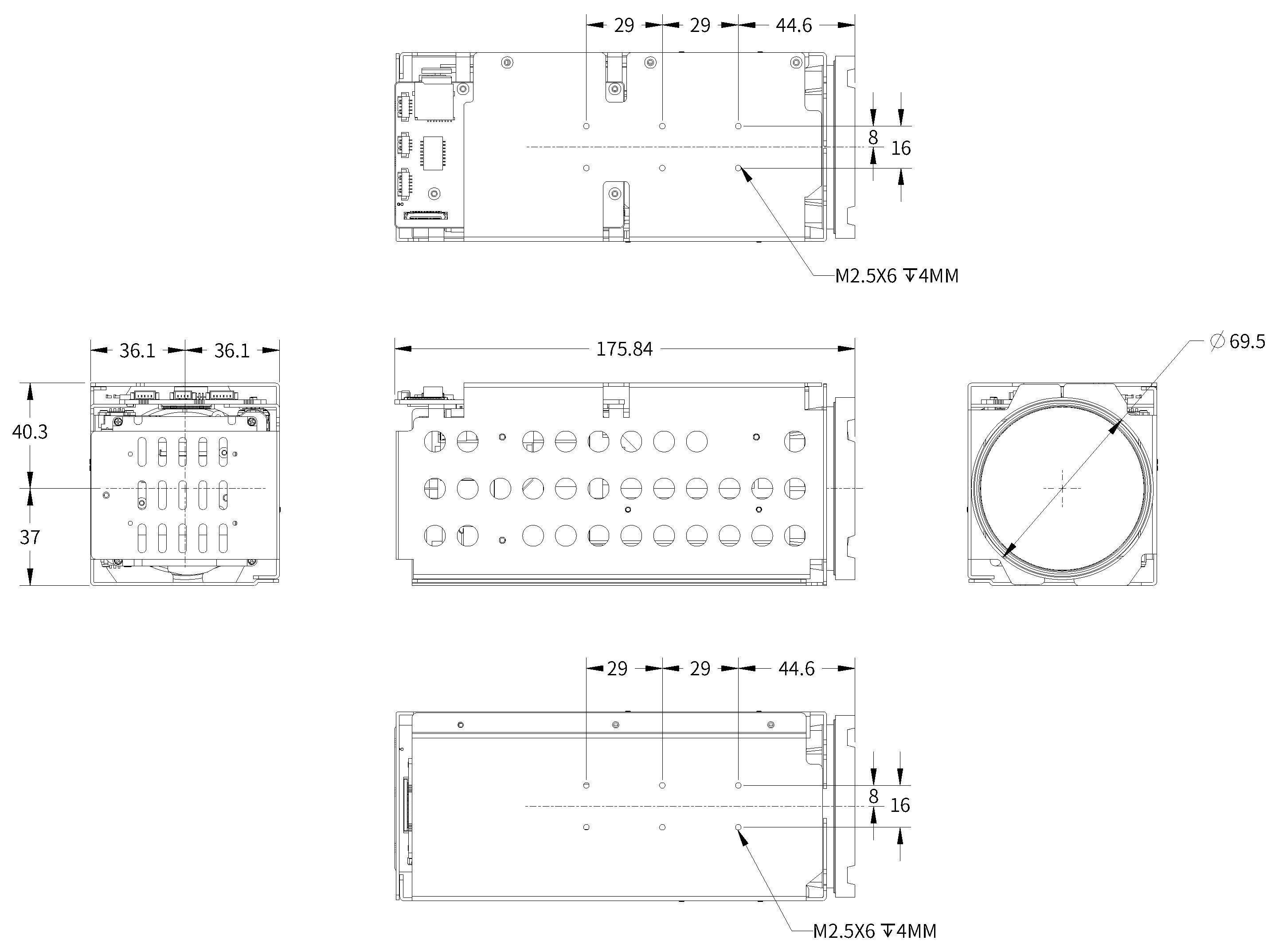 4pin Ethernet -poort, 6pin Power & UART -poort, 5pin -klankpoort. 30pin mipi |
